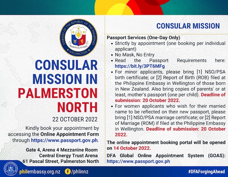 Consular Services for Filipinos in Palmerston North - 22 October 2022