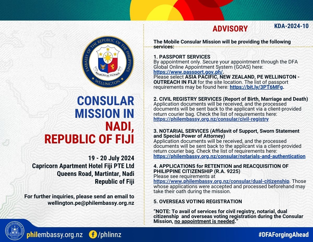 The Philippine Embassy in New Zealand informs the public that the Online Visa Appointment System (OVAS) is currently undergoing system maintenance and is inaccessible to clients under further notice.
