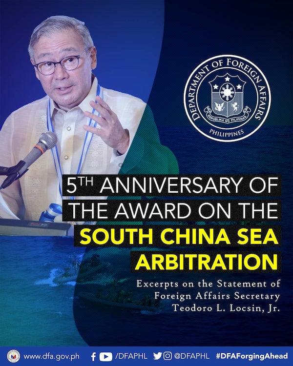 Today, 12 July, is the 5th Anniversary of the Award on the South China Sea Arbitration. Check out these excerpts from the statement of Secretary Teodoro L. Locsin, Jr. as we mark the occasion.