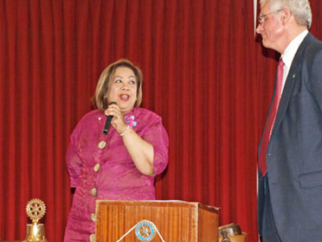 Acting President Douglas Webb welcomed H.E. Virginia H. Benavidez, the Ambassador for the Republic of the Philippines (and an Honorary Member of Rotary in the Philippines) and invited her to speak.