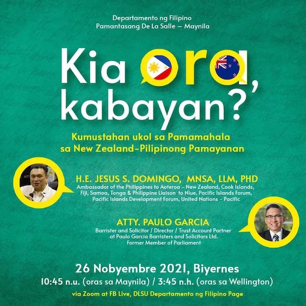 Sa aming online talakayan sa programa "Kia Ora Kabayan?", ibinahagi ko po yung mga patakaran at programa ng Pasuguan tungkol sa pag-sulong ng ating Kultura and mga Wika sa Bagong Zelandia. Ibinahagi po ni dating MP Paulo Garcia yung kahalagaan ng Pamilya at mga subok at tagumpay ng mga Filipino...