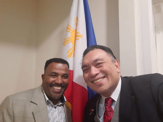 Meeting with Ethiopian-Kiwi Friend Nigussie Fenja, fellow leader in the Multicultural Council of Wellington - MCW. Ambassador discussed prospects for Philippine - Ethiopian - New Zealand cultural and business initiatives