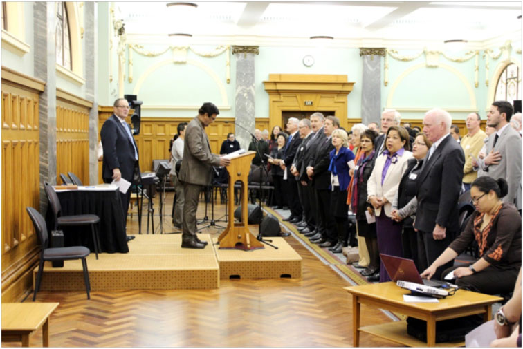 For the second time, Philippine Ambassador Virginia H. Benavidez has been invited to attend the Prayer @ Parliament held at the Grand Hall of the Parliament of New Zealand on 27 June 2013. Pastor Rasik Ranchord, Convener of the Christian Prayer Gathering and Founding Pastor of the Abundant Life Church (ALC) in New Zealand, holds the Prayer @ Parliament three times a year, every March, June and September to pray for the government, leaders, business. church, youth, family, media, sport, education, various sectors of society of New Zealand and prevailing developments, issues and concerns affecting the country. Since its inception eight years ago, Ministers and Parliamentarians have participated in the prayer gatherings open to all people from different denominations and places in New Zealand.