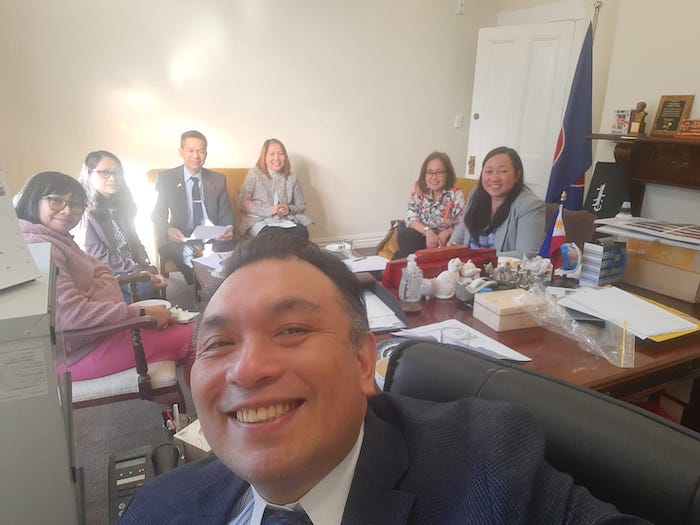 Wellington's Philippine One-Country Team of DFA and DOLE Public Servants strategizing for our meeting tomorrow with the NZ Ministry of Foreign Affairs and Trade with regard to our proposed PH-NZ Agreement on Nursing / CAP.