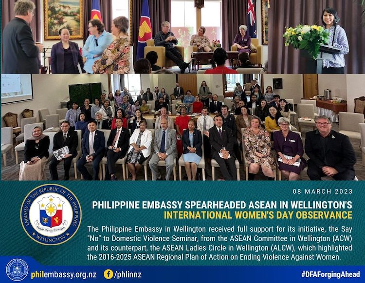 The Philippine Embassy in Wellington received full support for its initiative, the Say “No” to Domestic Violence Seminar, from the ASEAN Committee in Wellington (ACW) and its counterpart, the ASEAN Ladies Circle in Wellington (ALCW), which highlighted the 2016-2025 ASEAN Regional Plan of Action...