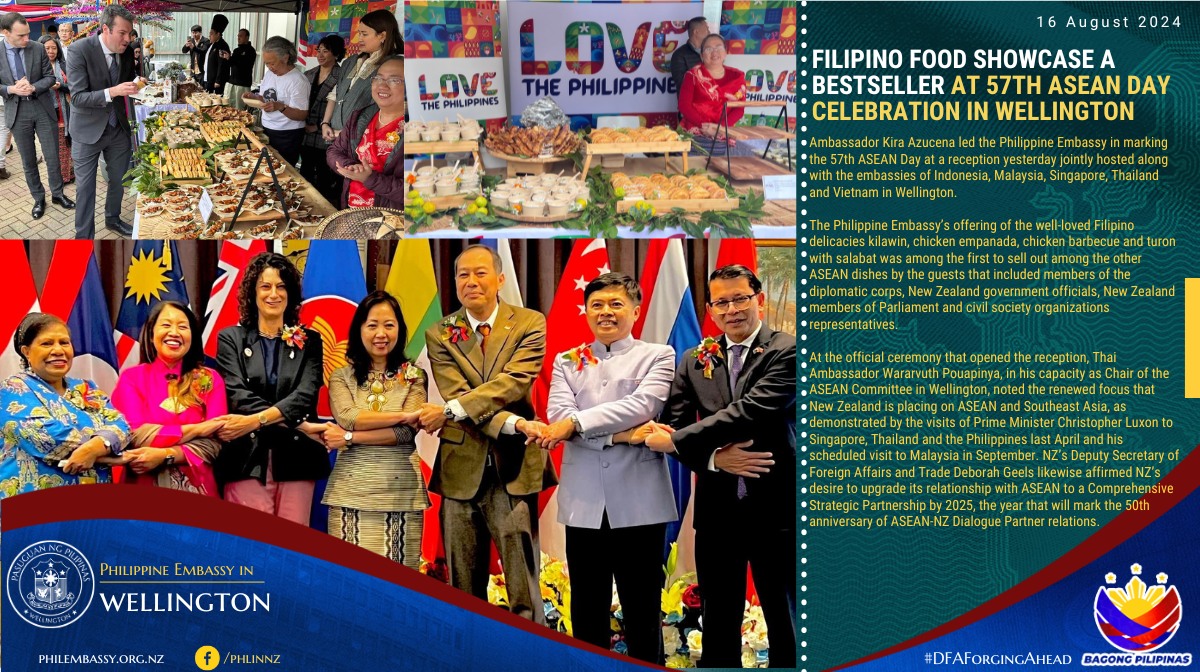 Ambassador Kira Azucena led the Philippine Embassy in marking the 57th ASEAN Day at a reception yesterday jointly hosted along with the embassies of Indonesia, Malaysia, Singapore, Thailand and Vietnam in Wellington.