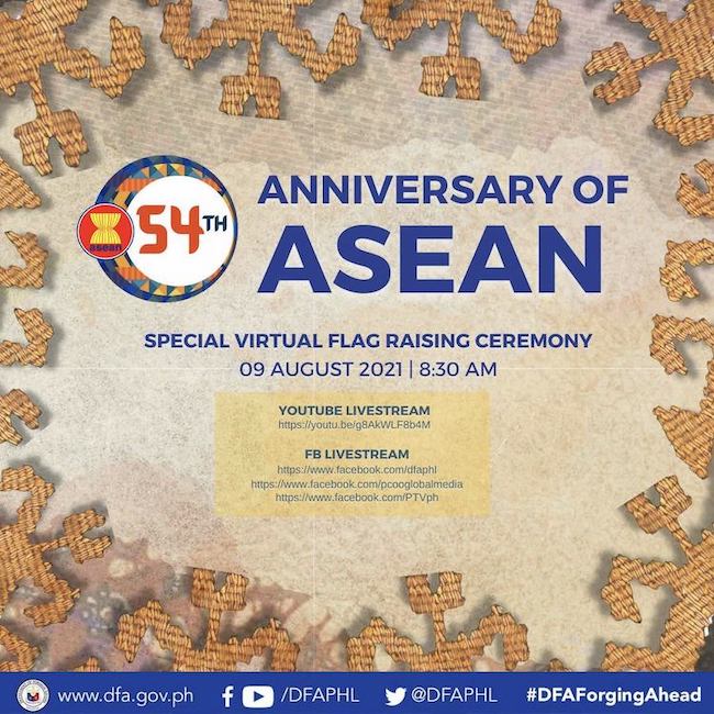 This year, we invite you to join us in commemorating the 54th Founding Anniversary of ASEAN through a virtual flag raising ceremony on Monday, 09 August 2021 at 8:30 AM.