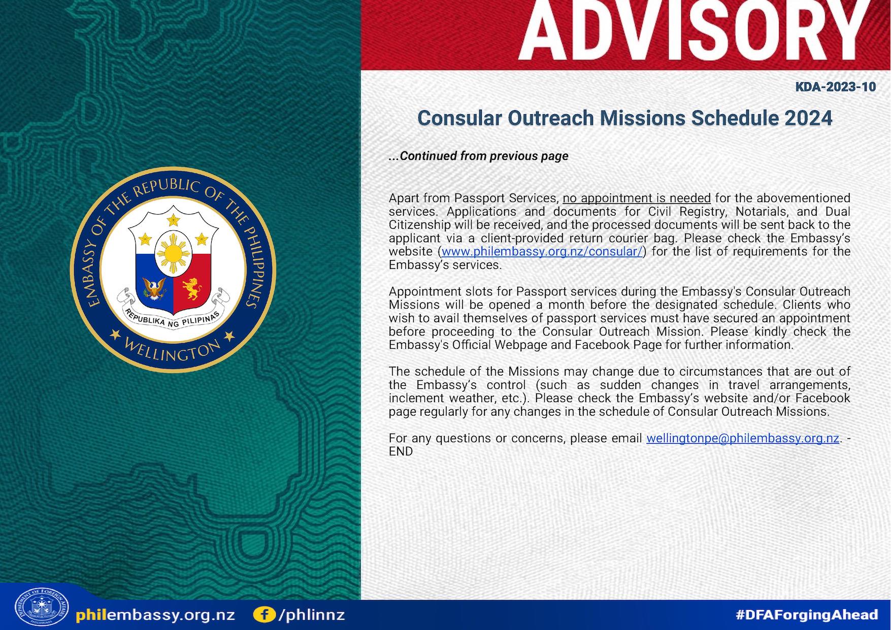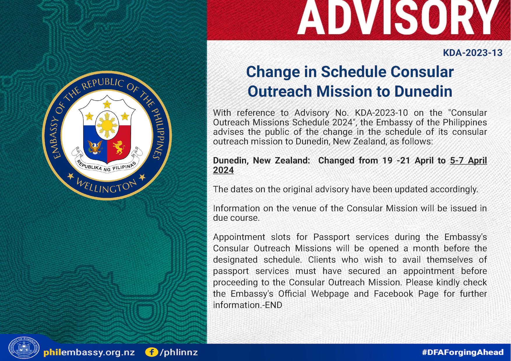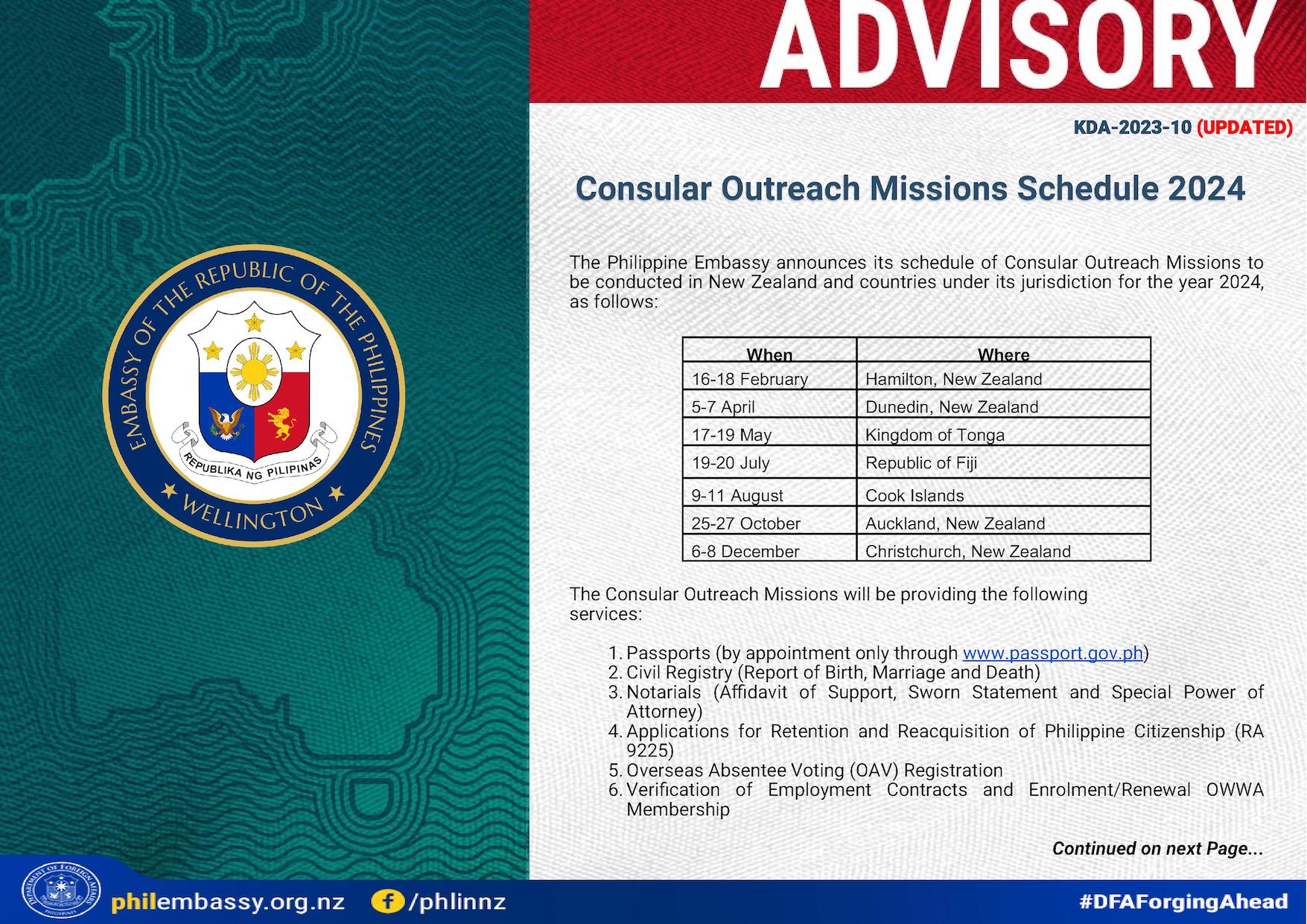The public is advised that the Philippine Honorary Consulate in Suva, Fiji will be closed to the public from Saturday, 16 December 2023, until Sunday,