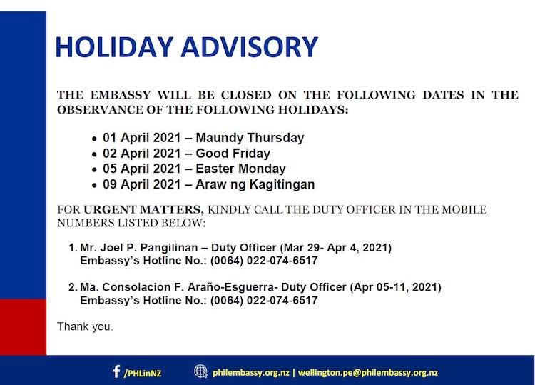Following the pronouncement of Prime Minister Jacinda Ardern on 27 February 2021 that the Auckland region will move to Alert Level 3 – Restrict starting 6.00am on 28 February 2021 for the next seven (7) days, and the rest of New Zealand will move to Alert Level 2 – Reduce Contact, the Philippi...