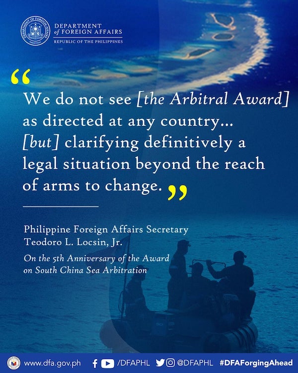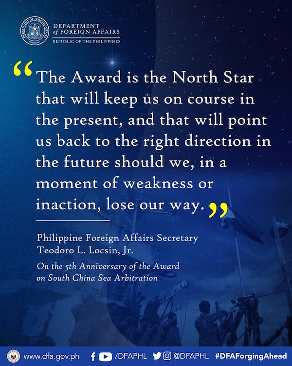 Today, 12 July, is the 5th Anniversary of the Award on the South China Sea Arbitration. Check out these excerpts from the statement of Secretary Teodoro L. Locsin, Jr. as we mark the occasion.