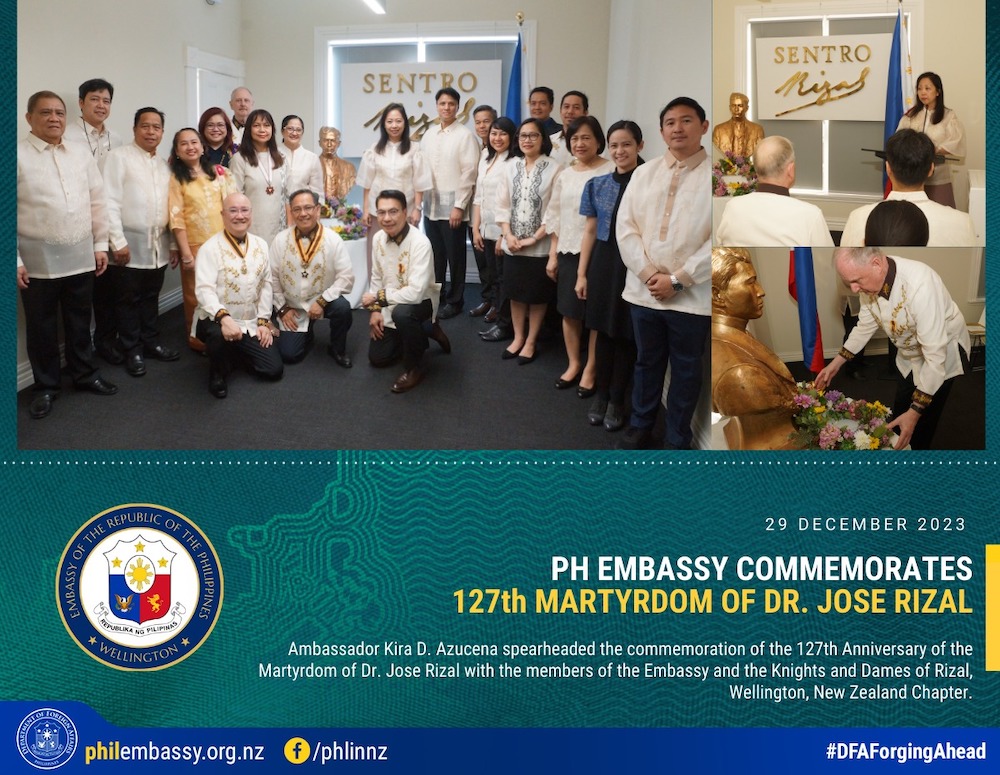 Ambassador Kira D. Azucena spearheaded the commemoration of the 127th Anniversary of the Martyrdom of Dr. Jose Rizal with the members of the Embassy and the Knights and Dames of Rizal, Wellington, New Zealand Chapter.