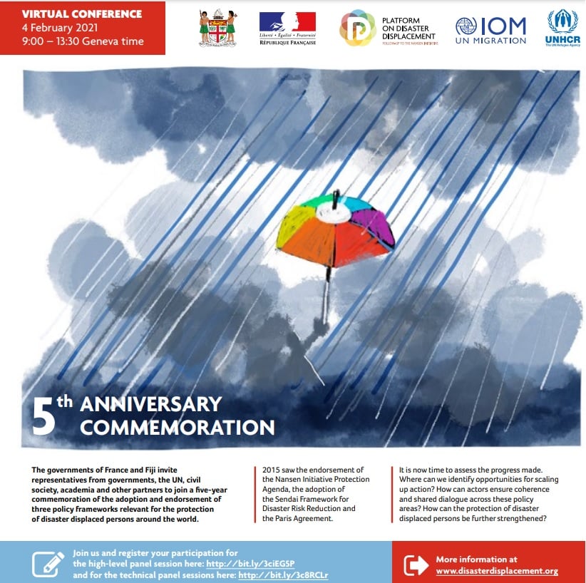 Please join us today 4 Feb 2021 for the 5th Anniversary of the #PlatformOnDisasterDisplacement - 9:00am Geneva, 4:00pm Philippine, 9:00pm New Zealand time.
