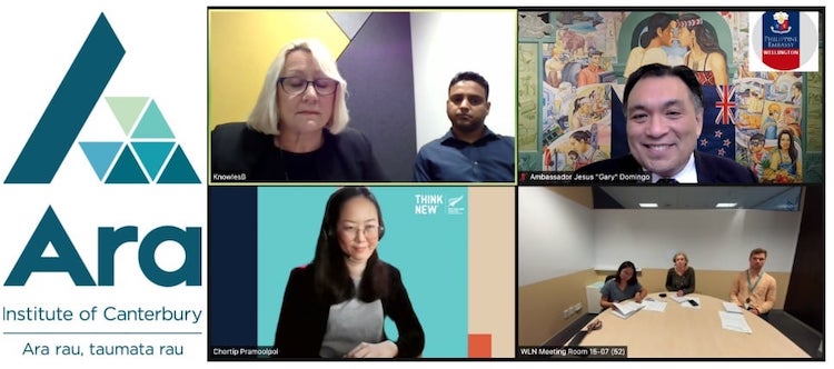 Online discussion with Ara Institute of Canterbury and #EducationNZ on PH-NZ collaborations in 2022. Facilitated by the NZ Ministry of Foreign Affairs and the NZ Embassy in the Philippines. Partnerships with PH counterparts were explored, and closer links with the Filipino Community in NZ, parti...
