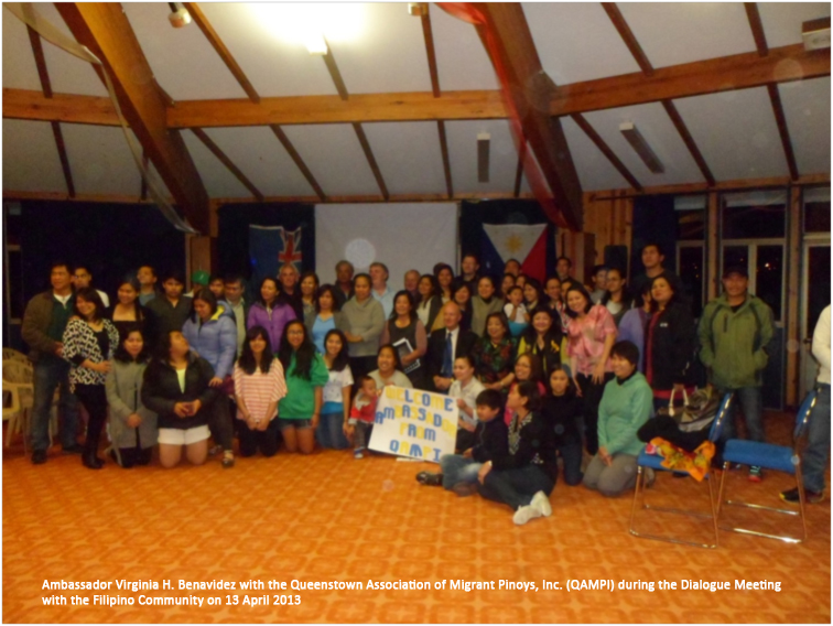 As the Philippine Embassy simultaneously delivers its mobile consular services for the Filipino communities and embarks on economic diplomacy initiatives in Queenstown and the surrounding cities of the South Island in New Zealand on 12-15 April 2013, Ambassador Virginia H. Benavidez and Consul A...